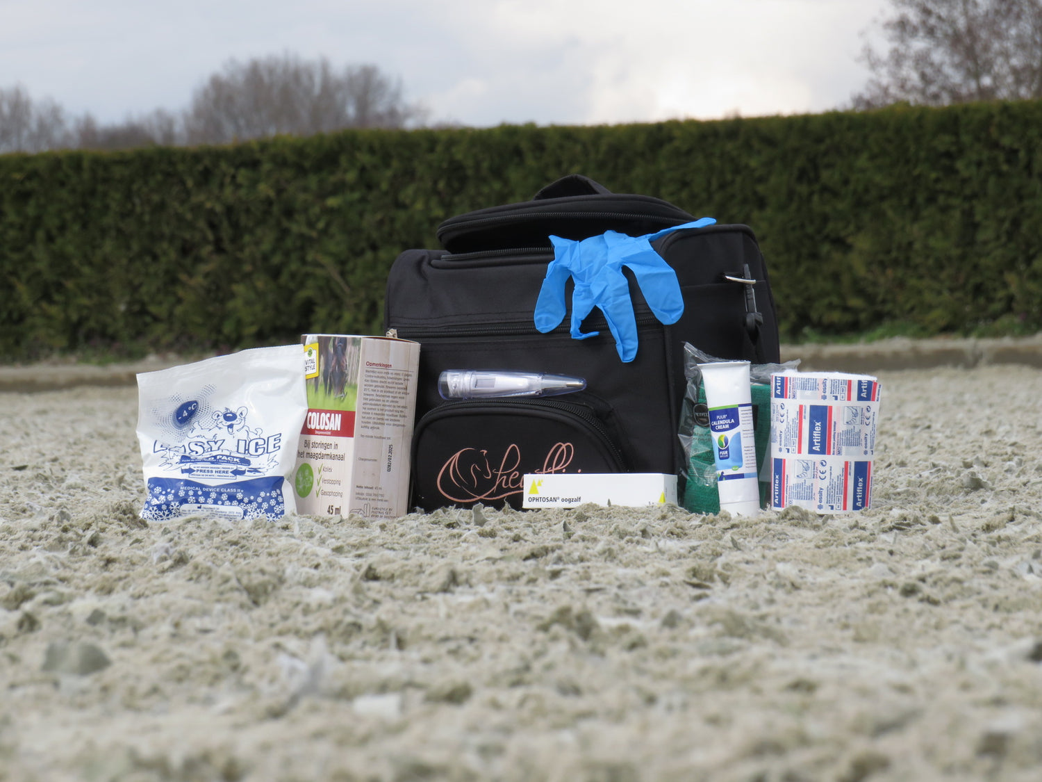 De tassen van Chevallini bevatten benodigdheden die je snel bij de hand wil hebben als er wat gebeurd met je paard. Denk aan colosan bij de eerste hulp van koliek, een verband bij een hevige wond, of een ijspack. Ook vliegenspray of een hoevenkrabber is handig om bij je te hebben.