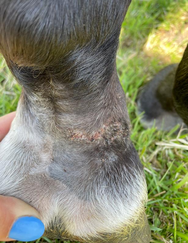 Mok ten gevolge van een bacteriële infectie uit zich meestal door vochtige korsten en een vuurrode, geïrriteerde huid in de kootholte. Meestal zitten er onder de korsten kleine wondjes. In ernstigere gevallen kunnen er zelfs een soort kloven ontstaan. Vaak is de huid daar ook heel gevoelig, sommige paarden